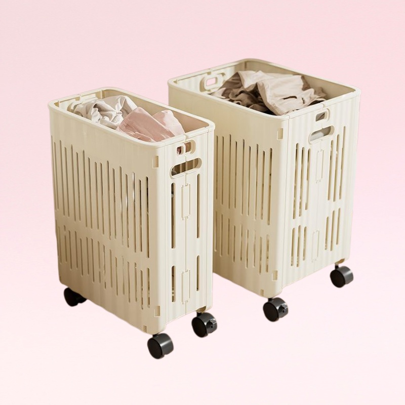 ตะกร้าผ้าสกปรกพับได้ ตะกร้าเก็บเสื้อผ้าแบบมีล้อ